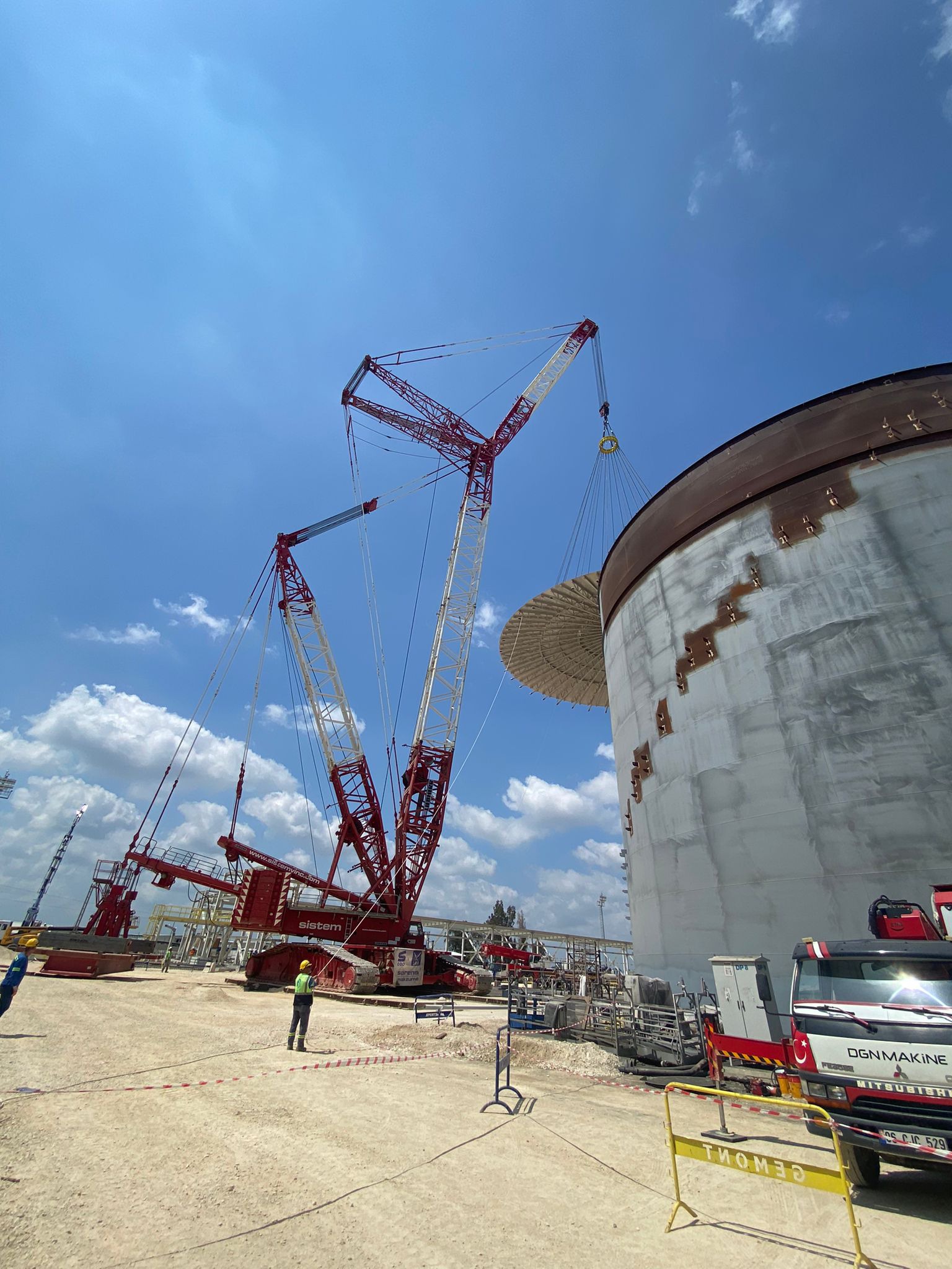 Adana SASA Polyester Fabrikası sahasında, depo kurulum çalışmalarımız Nisan 2022 itibarıyla başlamış olup, başarıyla tamamlanmıştır. Proje kapsamında ağır kaldırma operasyonları için 750 ton kapasiteli LIEBHERR LR 1750 paletli vinç (77 metre ana bom – SDB konfigürasyonu, 42 metre fly bom – HSDBV konfigürasyonu) ve 400 ton kapasiteli TEREX CC 2400-1 paletli vinç (48 metre ana bom – SSL konfigürasyonu) kullanılmıştır.